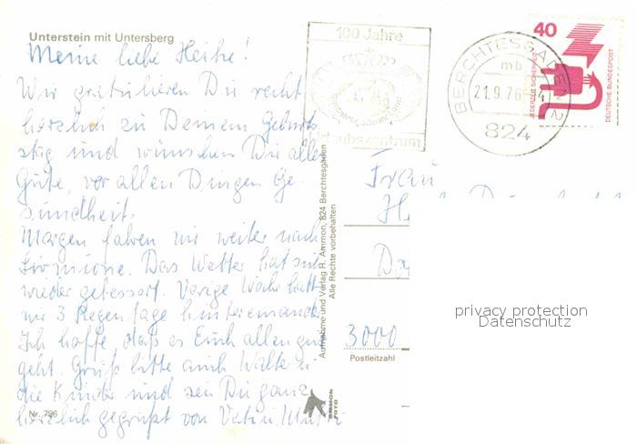 72757893 alte Postkarte Unterstein Schoenau Untersberg postalisch gelaufen Erhaltung siehe scans [NatalD47] KatCode: 11110009172132