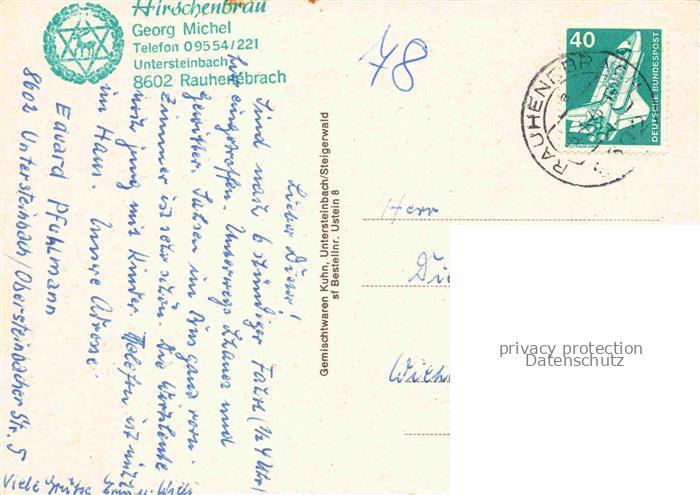 74043477 alte Postkarte Untersteinbach Rauhenebrach Ortsansicht mit Kirche Hauptstrasse Schule Panorama Kapelle postalisch gelaufen Erhaltung siehe scans [FriedD77] KatCode: 11110009674187