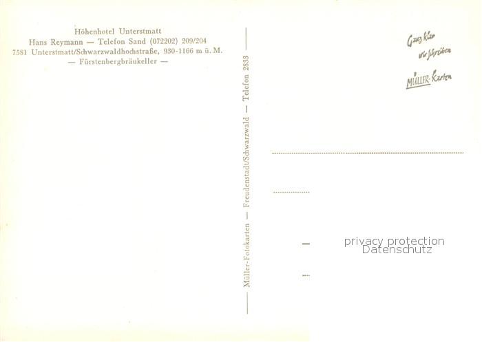 73674601 Unterstmatt Hoehenhotel Unterstmatt Fuerstenbergbraeukeller postalisch nicht gelaufen Erhaltung siehe scans [WerneD78] KatCode: 11110008317116