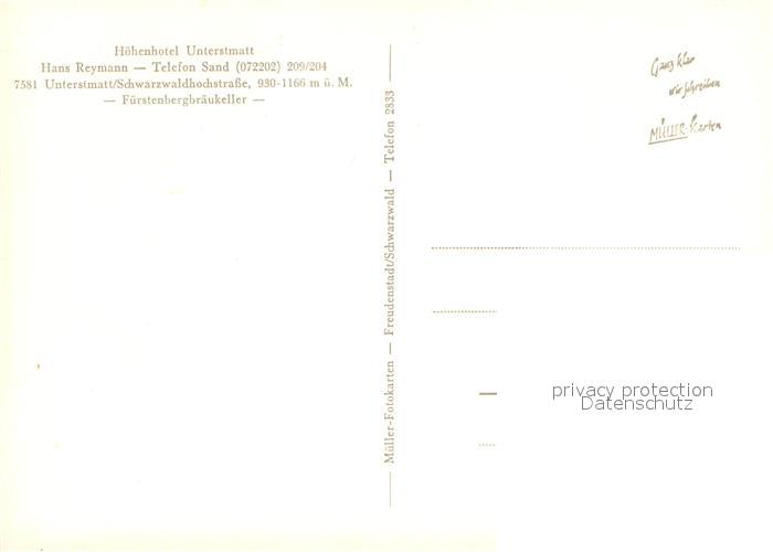 73674600 Unterstmatt Hoehenhotel Unterstmatt Fuerstenbergbraeukeller postalisch nicht gelaufen Erhaltung siehe scans [WerneD78] KatCode: 11110008317116