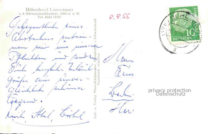 74154414 alte Postkarte Unterstmatt Sasbach Ortenaukreis BW Hoehenhotel an der Schwarzwaldhochstrasse postalisch gelaufen Erhaltung siehe scans [FriedD77] KatCode: 11110008317116