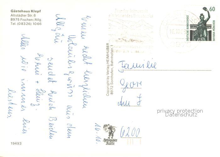 73615006 alte Postkarte Unterthalhofen Allgaeu Gaestehaus Klepf Zimmer und Ferienwohnungen postalisch gelaufen Erhaltung siehe scans [WerneD78] KatCode: 11110009780121