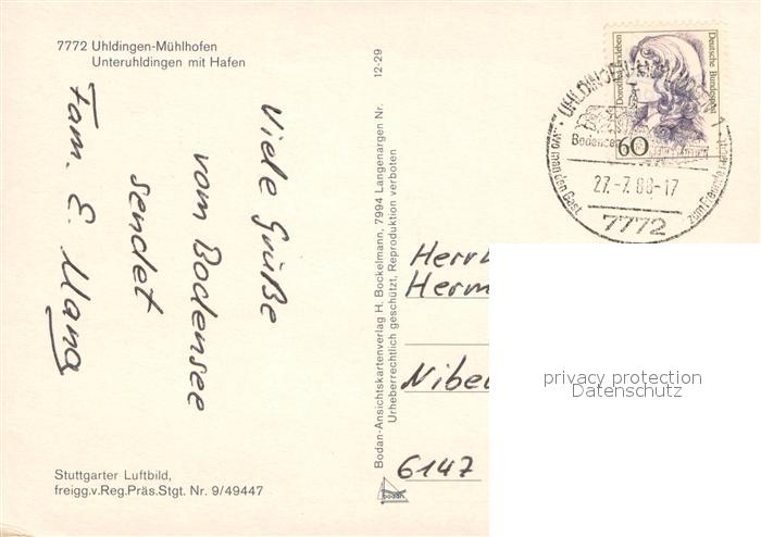 73732214 alte Postkarte Unteruhldingen Bodensee Fliegeraufnahme Gesamt mit Hafen postalisch gelaufen Erhaltung siehe scans [LiesaD40] KatCode: 11110008435066