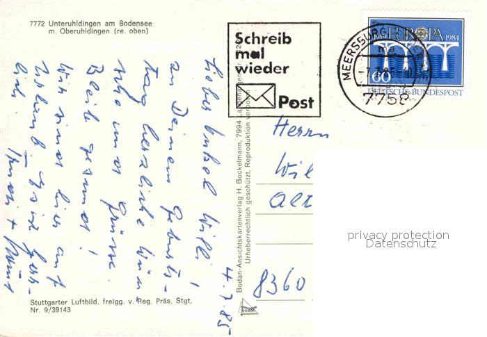 72792395 alte Postkarte Unteruhldingen Fliegeraufnahme postalisch gelaufen Erhaltung siehe scans [LiesaD40] KatCode: 11110008435066