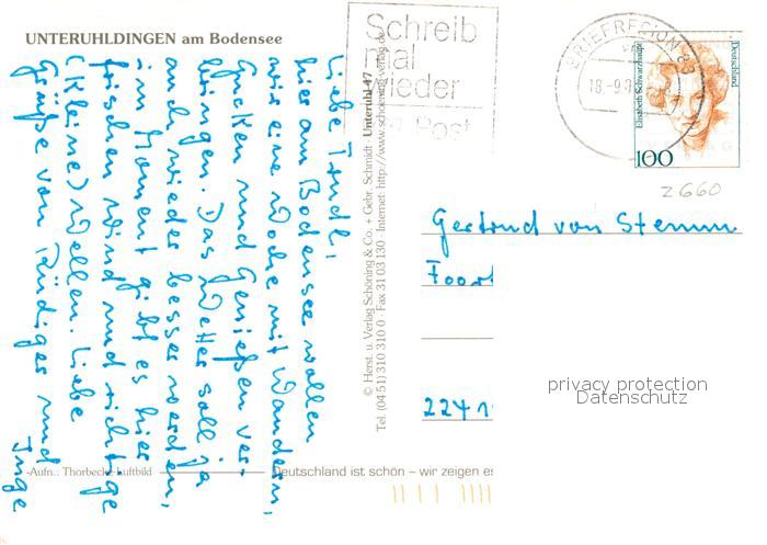 73123481 alte Postkarte Unteruhldingen Fliegeraufnahme postalisch gelaufen Erhaltung siehe scans [PaolaD17] KatCode: 11110008435066