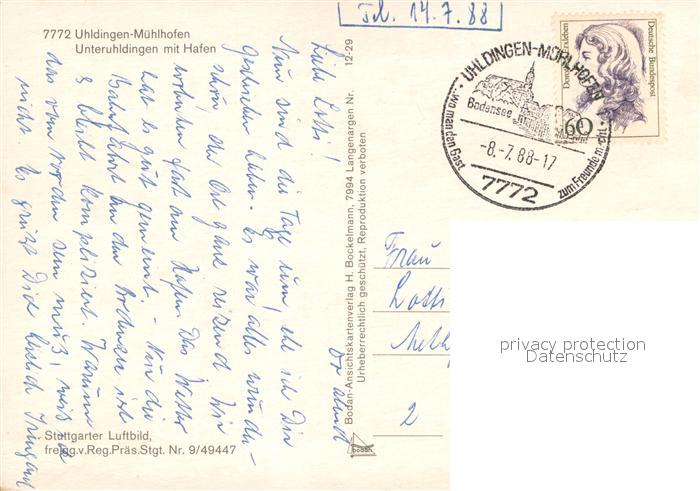 73715187 alte Postkarte Unteruhldingen Hafen Bodensee postalisch gelaufen Fliegeraufnahme Erhaltung siehe scans [FriedD77] KatCode: 11110008435066