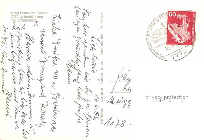 72856287 alte Postkarte Unteruhldingen Hotel Seehof postalisch gelaufen Erhaltung siehe scans [NatalD47] KatCode: 11110008435066