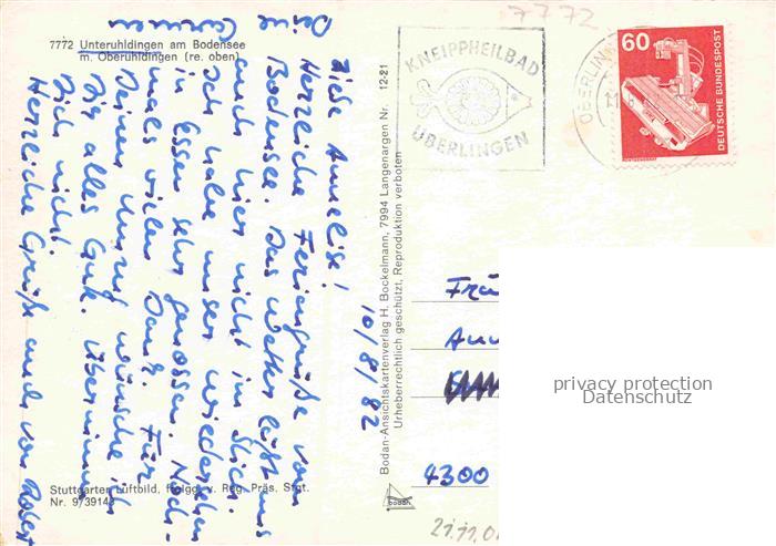 74142098 alte Postkarte Unteruhldingen-Muehlhofen Bodensee Fliegeraufnahme mit Oberuhldingen postalisch gelaufen Erhaltung siehe scans [WerneD78] KatCode: 11110008435066