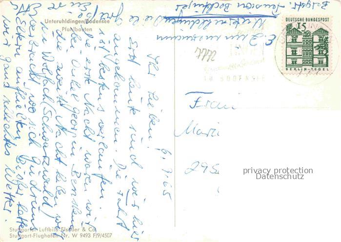 74104146 alte Postkarte Unteruhldingen-Muehlhofen Bodensee Pfahlbauten Hafen postalisch gelaufen Fliegeraufnahme Erhaltung siehe scans [FriedD77] KatCode: 11110008435066