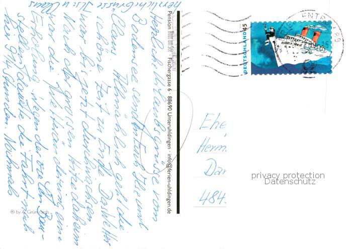 73791128 alte Postkarte Unteruhldingen Pension Haus am See Uferpartie Bodensee postalisch gelaufen Erhaltung siehe scans [FriedD77] KatCode: 11110008435066