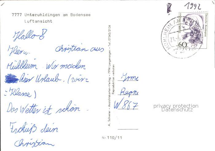 72525300 alte Postkarte Unteruhldingen Pfahlbauten Fliegeraufnahme postalisch gelaufen Erhaltung siehe scans KatCode: 11110008435066