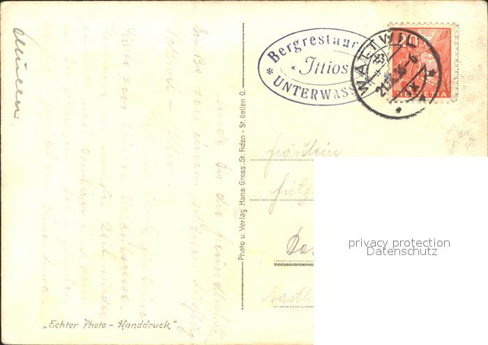 11629918 Unterwasser Toggenburg Berghaus und Restaurant Iltios Photo Handdruck postalisch gelaufen Erhaltung siehe scans Alte Ansichtskarte Postkarte alte Postkarte hz_F Katcode 11470190585770