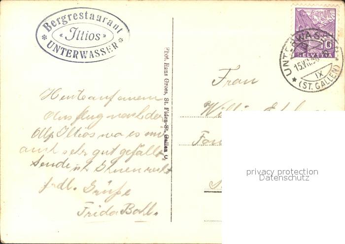 11652962 Unterwasser Toggenburg Bergrestaurant Iltios postalisch gelaufen Erhaltung siehe scans Alte Ansichtskarte Postkarte alte Postkarte hz_W Katcode 11470190585770