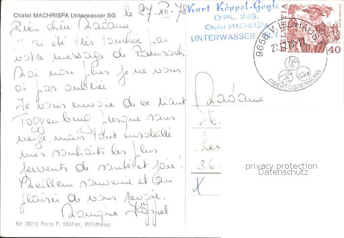 11652755 alte Postkarte Unterwasser Toggenburg Chalet Machrispa postalisch gelaufen Erhaltung siehe scans KatCode: 11470190585770