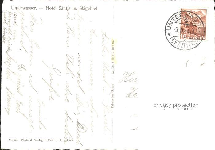 11632687 alte Postkarte Unterwasser Toggenburg Hotel Saentis mit Skigebiet postalisch gelaufen Erhaltung siehe scans KatCode: 11470190585770