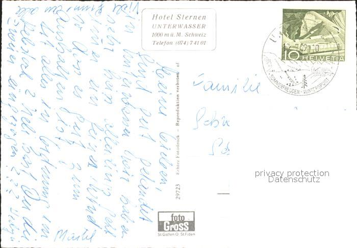 11632654 alte Postkarte Unterwasser Toggenburg Hotel Sternen postalisch gelaufen Erhaltung siehe scans KatCode: 11470190585770