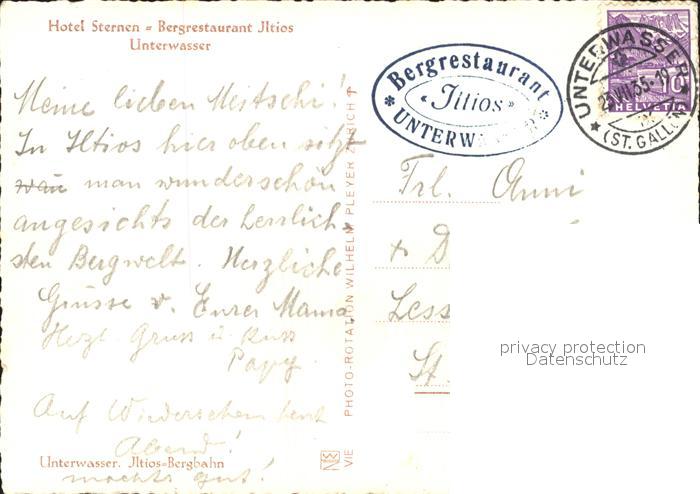 11628291 alte Postkarte Unterwasser Toggenburg Hotel Sternen Bergrestaurant Iltios Zahnradbahn postalisch gelaufen Erhaltung siehe scans KatCode: 11470190585770