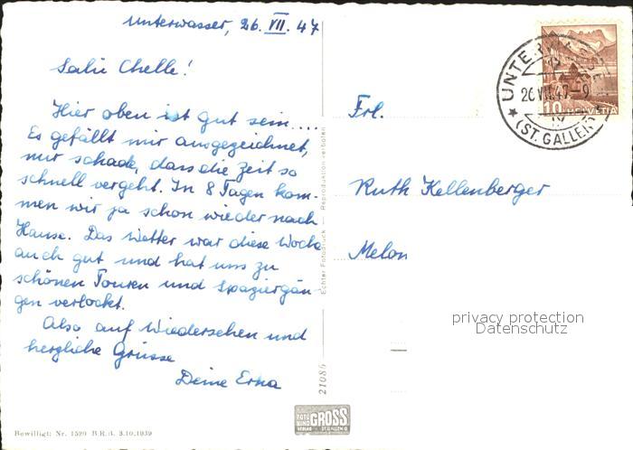 11650562 alte Postkarte Unterwasser Toggenburg mit Saentis und Schafberg postalisch gelaufen Erhaltung siehe scans KatCode: 11470190585770