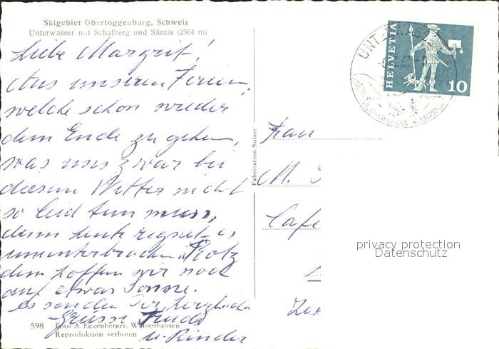 11632717 alte Postkarte Unterwasser Toggenburg mit Schafberg und Saentis postalisch gelaufen Erhaltung siehe scans KatCode: 11470190585770