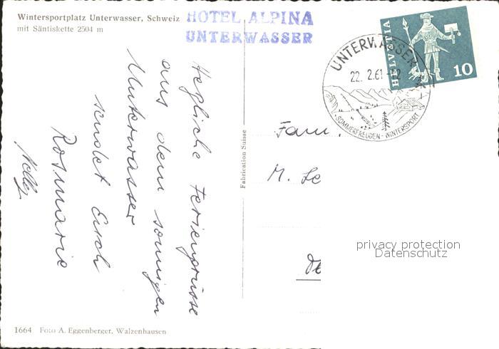 11629575 alte Postkarte Unterwasser Toggenburg Wintersportplatz Berghuetten Blick zur Saentisgruppe Appenzeller Alpen postalisch gelaufen Erhaltung siehe scans KatCode: 11470190585770