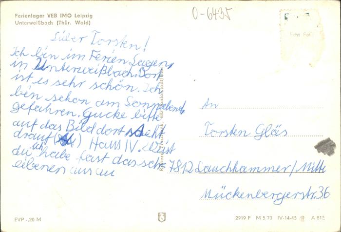 41263027 Unterweissbach Ferienlager VEB IMO Leipzig postalisch nicht gelaufen gute Erhaltung KatCode: 11110016073094