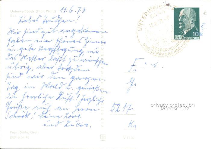 72058503 alte Postkarte Unterweissbach Freibad postalisch gelaufen Erhaltung siehe scans KatCode: 11110016073094