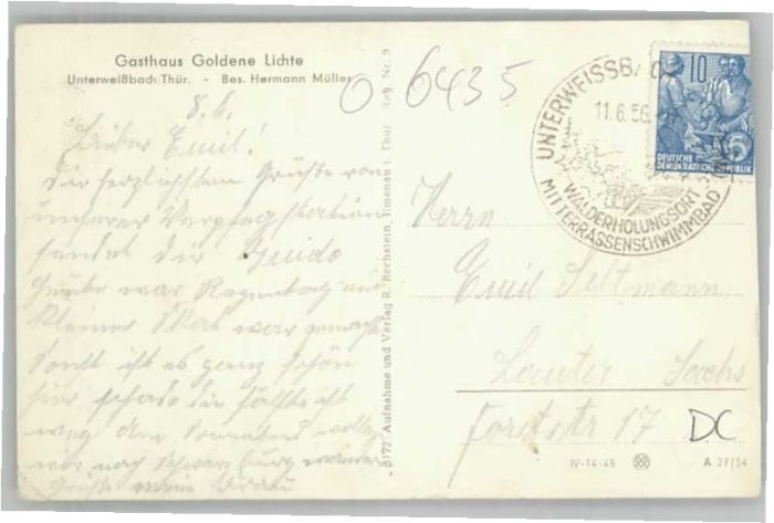 40655555 Unterweissbach Gasthaus Goldene Lichte KatCode 11110016073094
