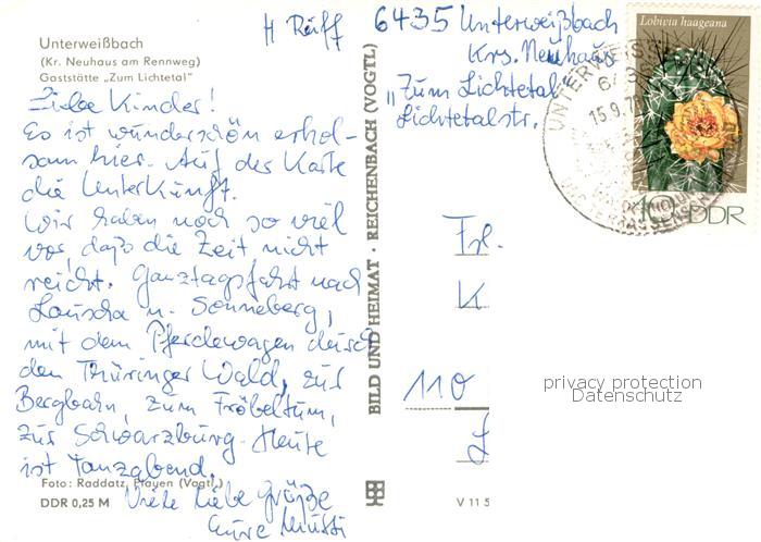 73769960 alte Postkarte Unterweissbach Gaststaette Zum Lichtetal Aussenansicht postalisch gelaufen Erhaltung siehe scans [LiesaD40] KatCode: 11110016073094