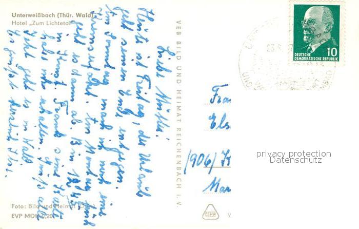 73322437 alte Postkarte Unterweissbach Hotel zum Lichtetal postalisch gelaufen Erhaltung siehe scans [LiesaD40] KatCode: 11110016073094