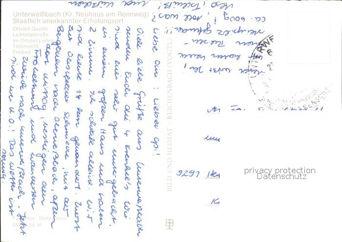 72248046 alte Postkarte Unterweissbach Quelitz Leibis postalisch gelaufen Erhaltung siehe scans KatCode: 11110016073094