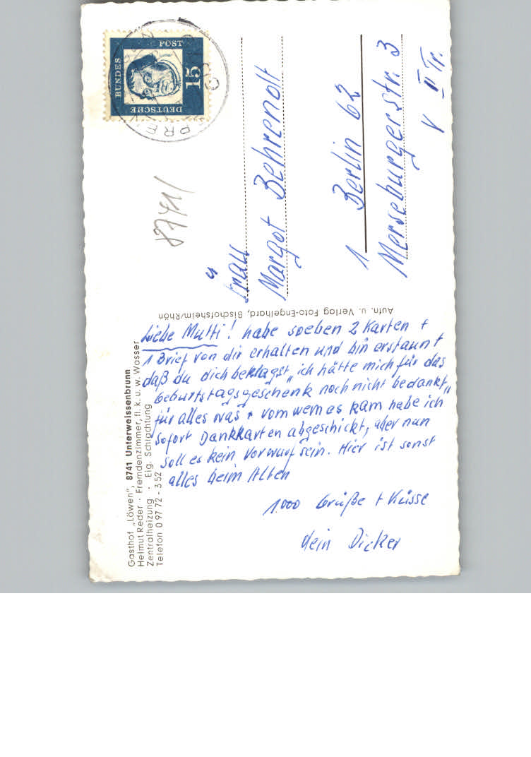 31171395 Unterweissenbrunn Rhoen Gasthof Loewen postalisch nicht gelaufen KatCode: 11110009673117