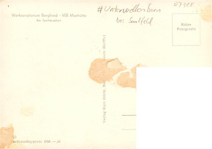 73924108 Unterwellenborn Werksanatorium Bergfried VEB Maxhuette Am Teehaeuschen postalisch nicht gelaufen Erhaltung siehe scans [FriedD77] KatCode: 11110016073111