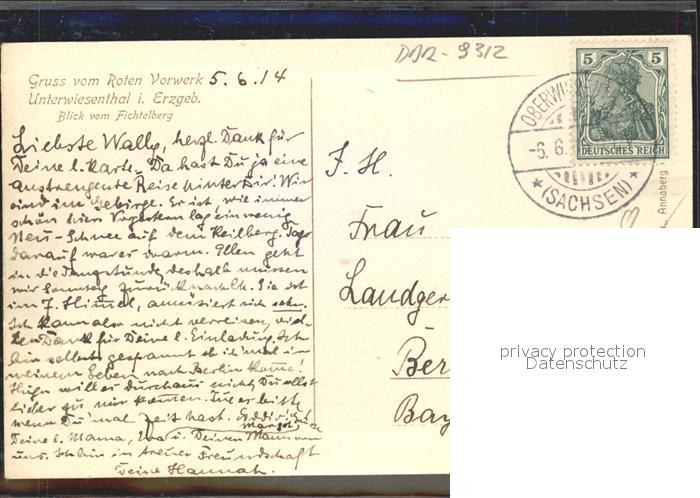 42264981 alte Postkarte Unterwiesenthal Blick vom Fichtelberg auf Rotes Vorwerk postalisch gelaufen Erhaltung siehe scans KatCode: 11110014171240