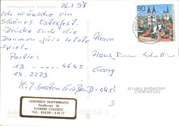 72263606 alte Postkarte Unterwirbach postalisch gelaufen Erhaltung siehe scans KatCode: 11110016073108