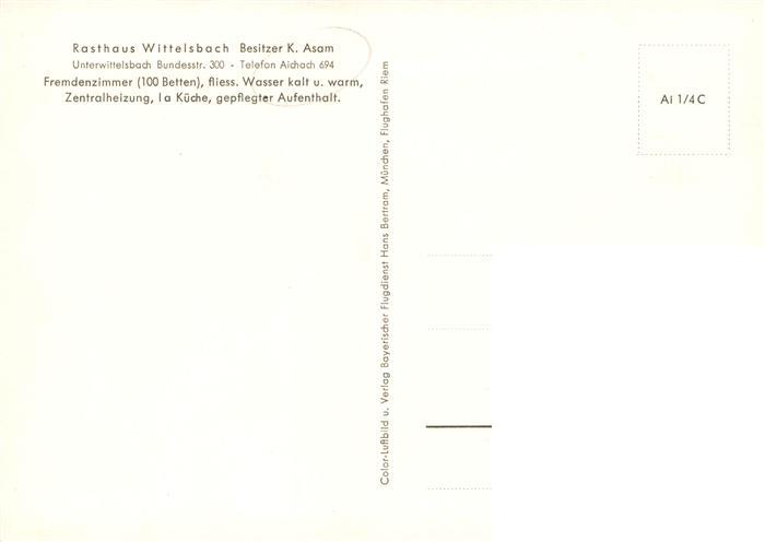 73878725 Unterwittelsbach Rasthaus Wittelsbach postalisch nicht gelaufen Fliegeraufnahme Erhaltung siehe scans [FriedD77] KatCode: 11110009771113