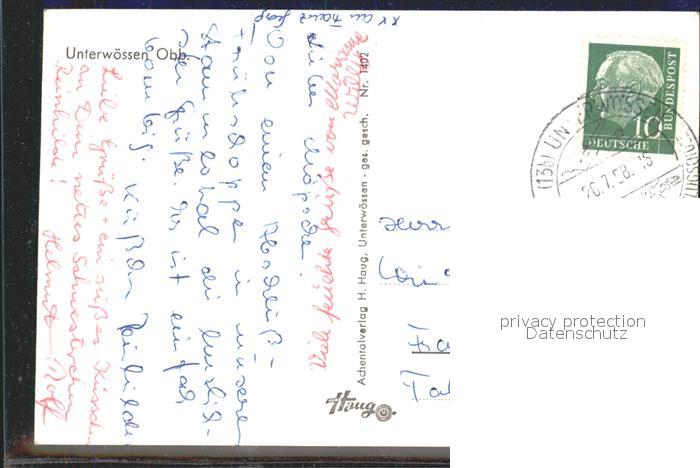 72134746 alte Postkarte Unterwoessen postalisch gelaufen Erhaltung siehe scans KatCode: 11110009189160