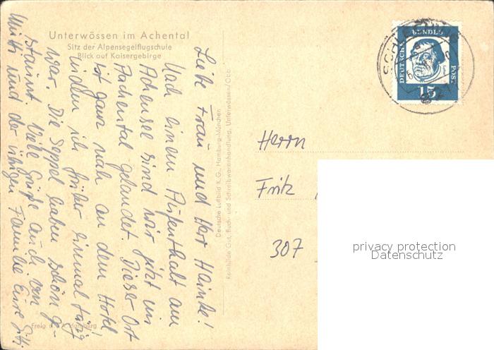 72076703 alte Postkarte Unterwoessen Achental Kaisergebirge Fliegeraufnahme postalisch gelaufen Erhaltung siehe scans KatCode: 11110009189160