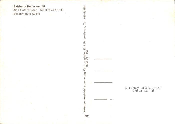 71987843 Unterwoessen Balsberg Stub’n am Lift postalisch nicht gelaufen Erhaltung siehe scans KatCode: 11110009189160