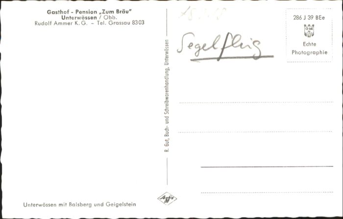 40774144 Unterwoessen Gasthof Pension Zum Braeu * postalisch nicht gelaufen Alte Ansichtskarte Postkarte Katcode 11110009189160