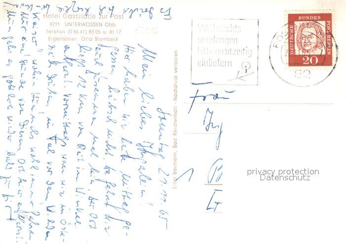 73648580 alte Postkarte Unterwoessen Hotel Gaststaette zur Post postalisch gelaufen Erhaltung siehe scans [WerneD78] KatCode: 11110009189160