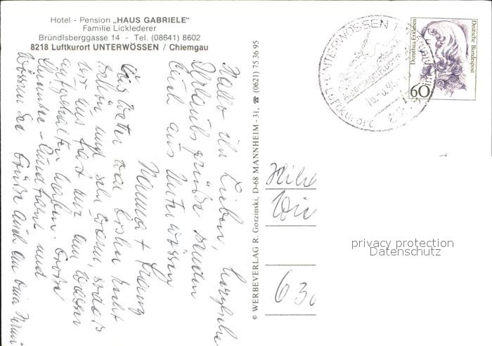 72547124 alte Postkarte Unterwoessen Hotel Haus Gabriele postalisch gelaufen Erhaltung siehe scans [WerneD78 kv017box] KatCode: 11110009189160