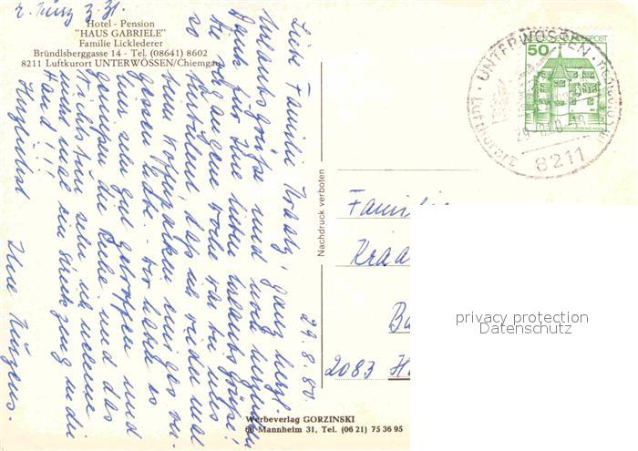 72683127 alte Postkarte Unterwoessen Hotel Pension Haus Gabriele postalisch gelaufen Erhaltung siehe scans [WerneD78] KatCode: 11110009189160