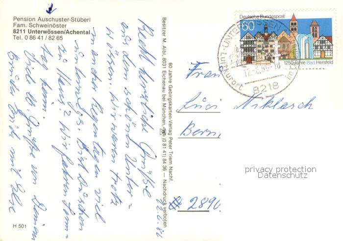 73654468 alte Postkarte Unterwoessen Pension Auschuster Stueberl im Achental postalisch gelaufen Erhaltung siehe scans [FriedD77] KatCode: 11110009189160