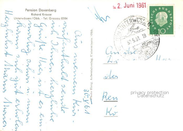 73704571 alte Postkarte Unterwoessen Pension Daxenberg Gastraum Wegekreuz Landschaftspanorama Alpen postalisch gelaufen Erhaltung siehe scans [FriedD77] KatCode: 11110009189160