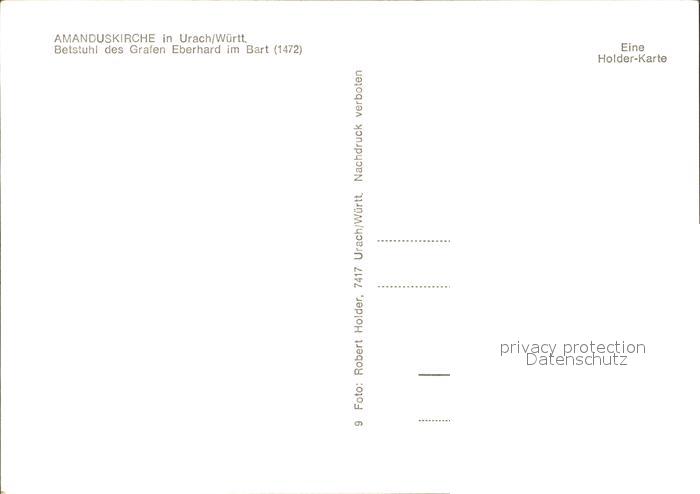 72178810 Urach Bad Amaduskirche Betstuhl Grafen Eberhard Bart postalisch nicht gelaufen Erhaltung siehe scans KatCode: 11110008415078