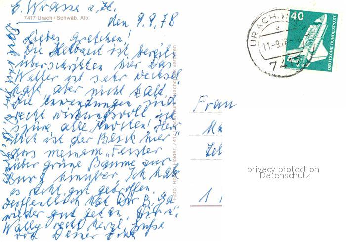 72825319 alte Postkarte Urach Bad Brunnen Wasserfall Hallenbad Marktplatz postalisch gelaufen Erhaltung siehe scans [AndreD76] KatCode: 11110008415078