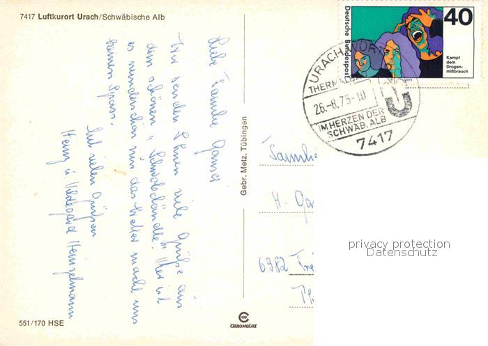 72715905 alte Postkarte Urach Bad Fachwerk Wasserfall Brunnen Burgruine postalisch gelaufen Erhaltung siehe scans [LiesaD40] KatCode: 11110008415078