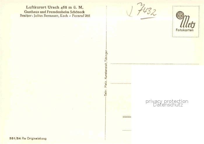 42898807 Urach Bad Gasthaus Schoeneck postalisch nicht gelaufen Erhaltung siehe scans [NatalD47] Nata Katcode 11110008415078