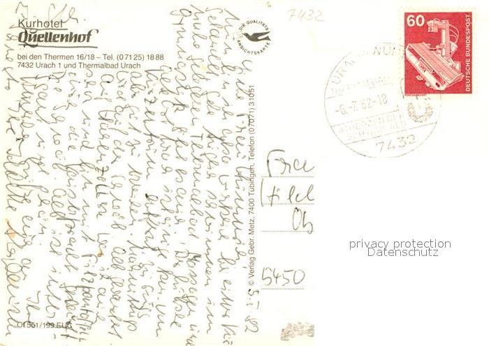 73165974 alte Postkarte Urach Bad Kurhotel Quellenhof postalisch gelaufen Erhaltung siehe scans [KathaD81] KatCode: 11110008415078