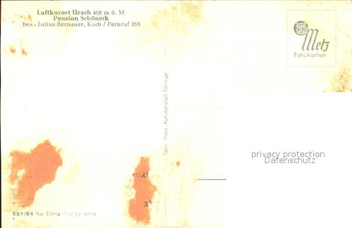 41760058 Urach Bad Pension Schoeneck postalisch nicht gelaufen Erhaltung siehe scans KatCode: 11110008415078